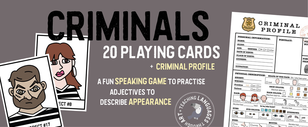 Put your detective skills to the test with these 20 Criminal Cards, featuring 10 male and 10 female portraits that add an intriguing twist to the classic game "who is who". This set also includes a Criminal Profile sheet for students to practise their descriptive language through a role-playing game. Perfect for classroom fun, these cards will challenge your students to guess and describe facial features in a whole new way. Can they crack the case and identify the culprit? Play to find out!